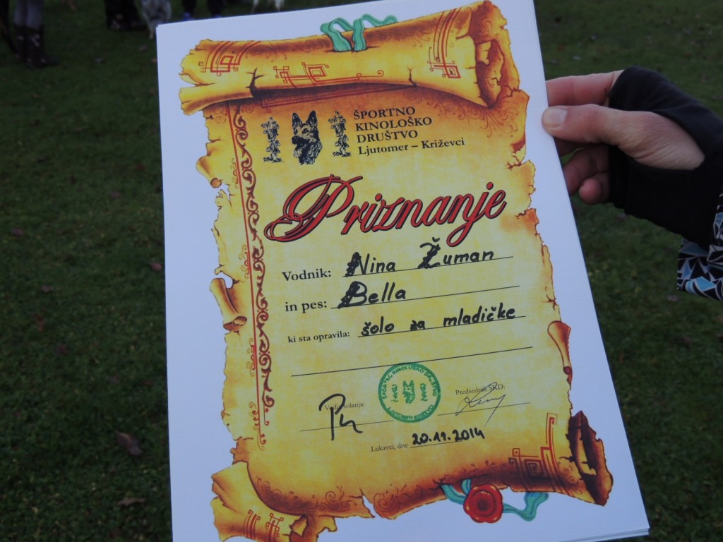 Po uspešnem jesenskem šolanju psov; ŠOLA MLADIČEV...