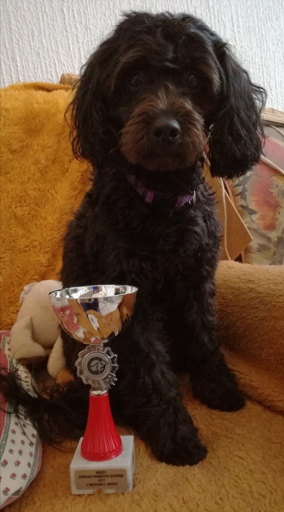 Lola - državna in pokalna podprvakinja v agilityju Lola in njena vodnica Nastja Feguš sta letos postali državni in pokalni podprvakinji. ČESTITAMO! Dosegli sta 2. mesto v skupnem seštevku za državno prvenstvo in 2. mesto v agilitiju, v kategoriji A1 medium.