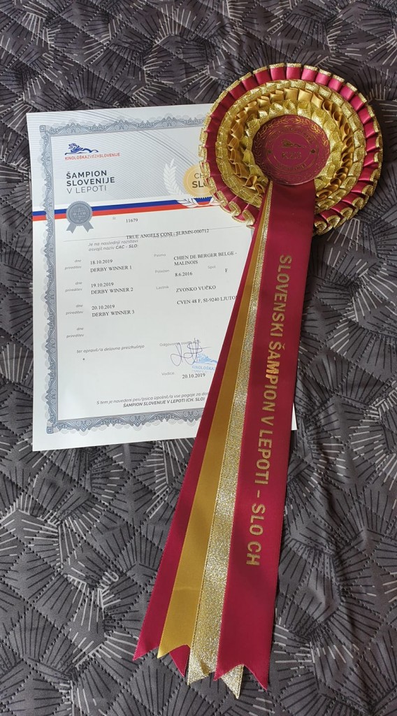 TRUE ANGELS CONI (belgijski ovčar), vodnik Zvonko Vučko, je osvojila naslov Slovenski šampion v lepoti-SLO CH.