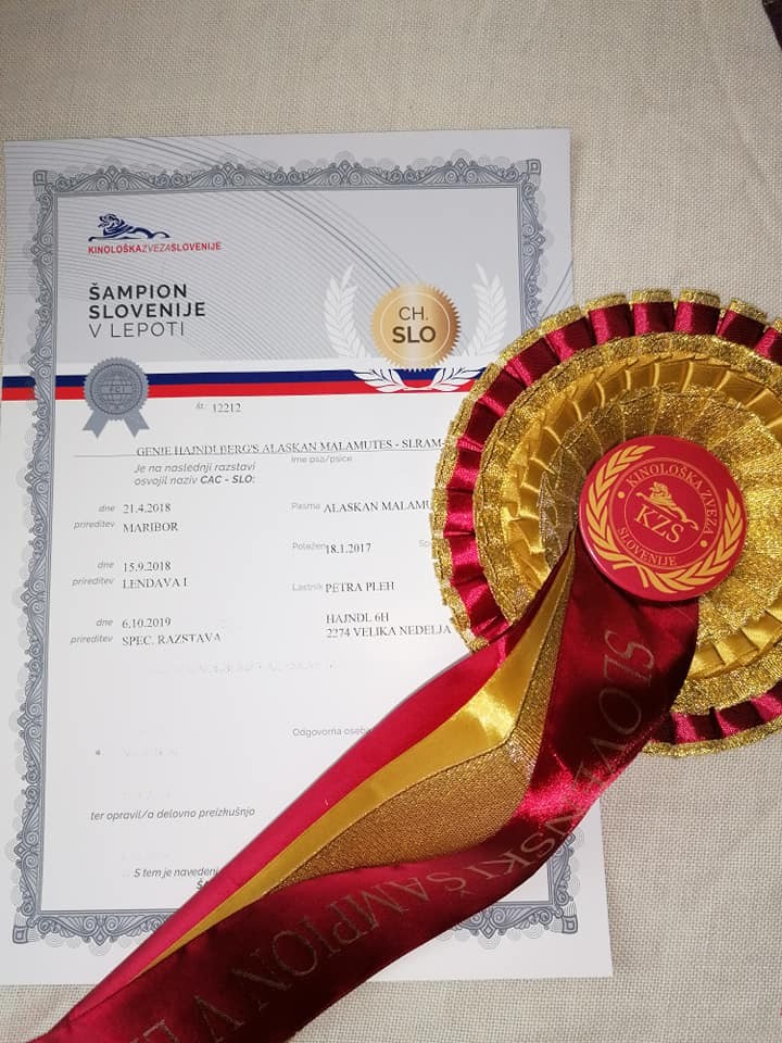 GENIE HAJNDLBERG-Emma (aljaški malamut), vodnica Petra Pleh, je osvojila naslov Slovenski šampion v lepoti-SLO CH.