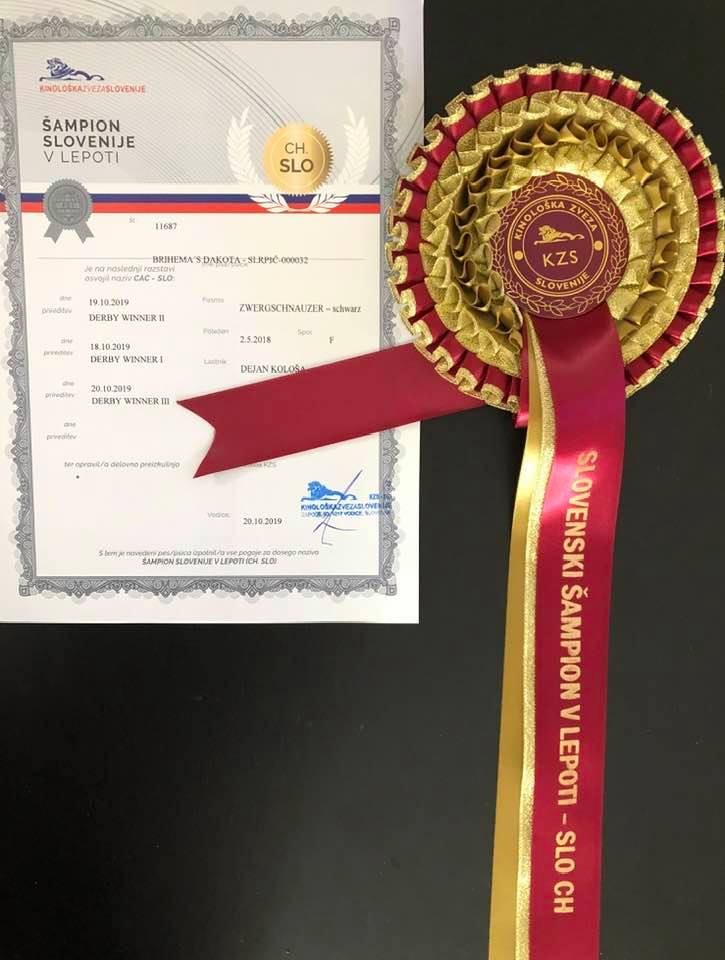 BRIHEMA‘S DAKOTA-Daisy (pritlikavi šnavcer), vodnica Eva K., je osvojila naslov Slovenski šampion v lepoti-SLO CH.
